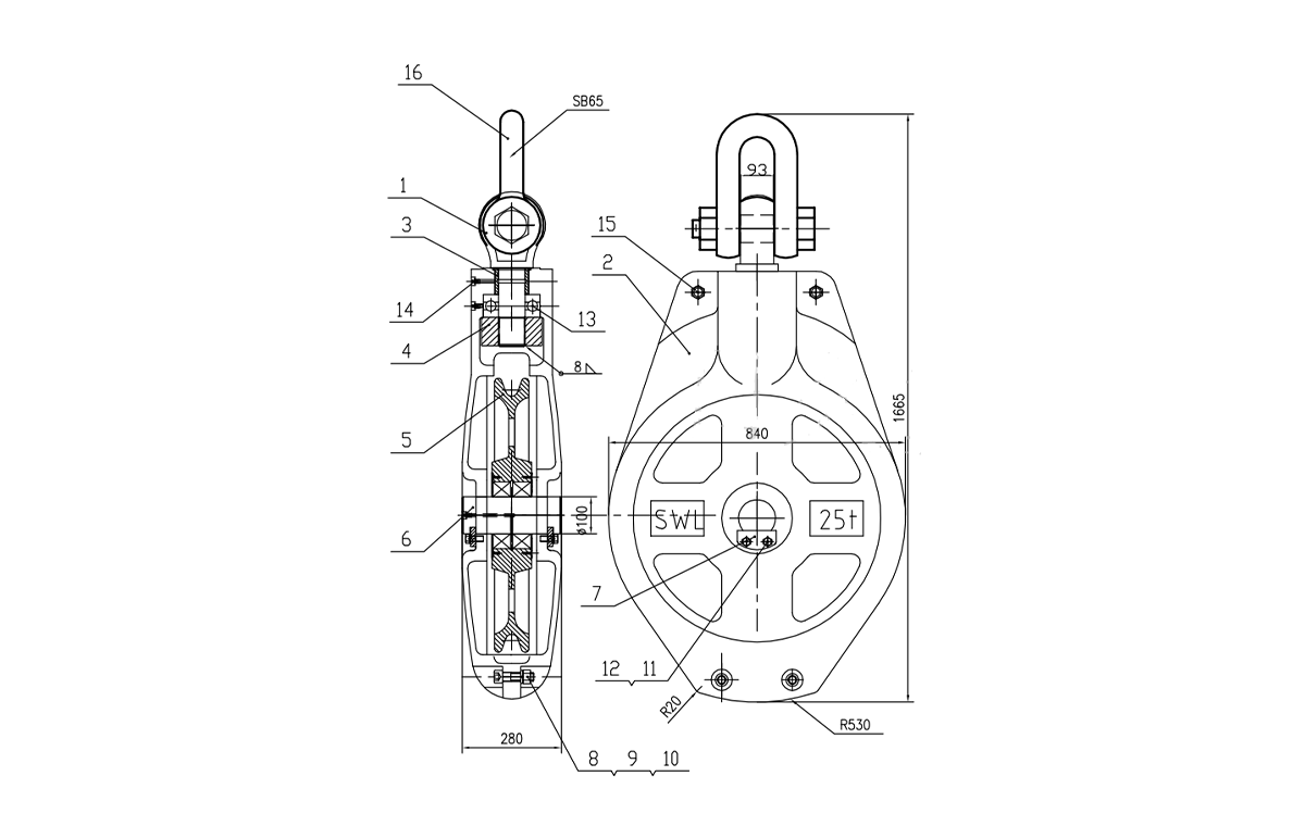 BLOCO DE POLIA DE BLOCO DE CARGA DE AÇO FUNDIDO