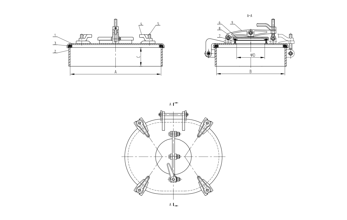 Operação amigável : equipado com 6 alças de cães de ferro fundido que permitem a fixação rápida e segura; O braço embutido simplifica a abertura/fechamento, mesmo para operadores únicos.